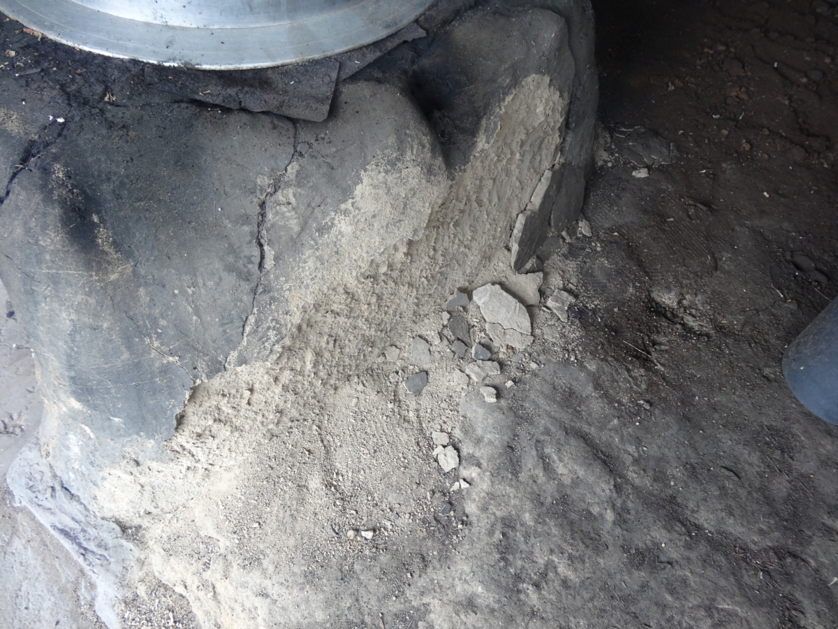 窯も使っていないと傷みます。地面に直に据えてあるので湿気がそのまま伝わってしまいます。