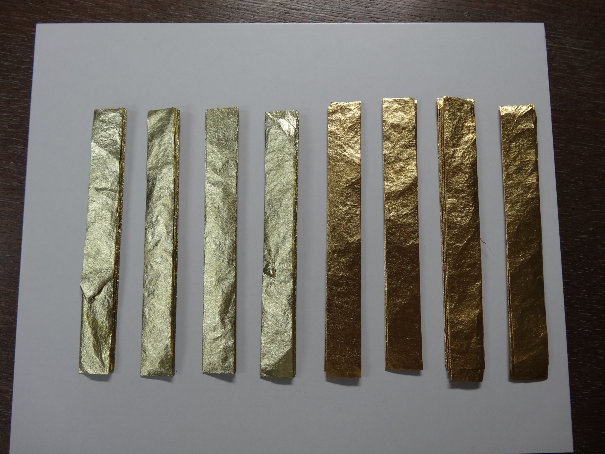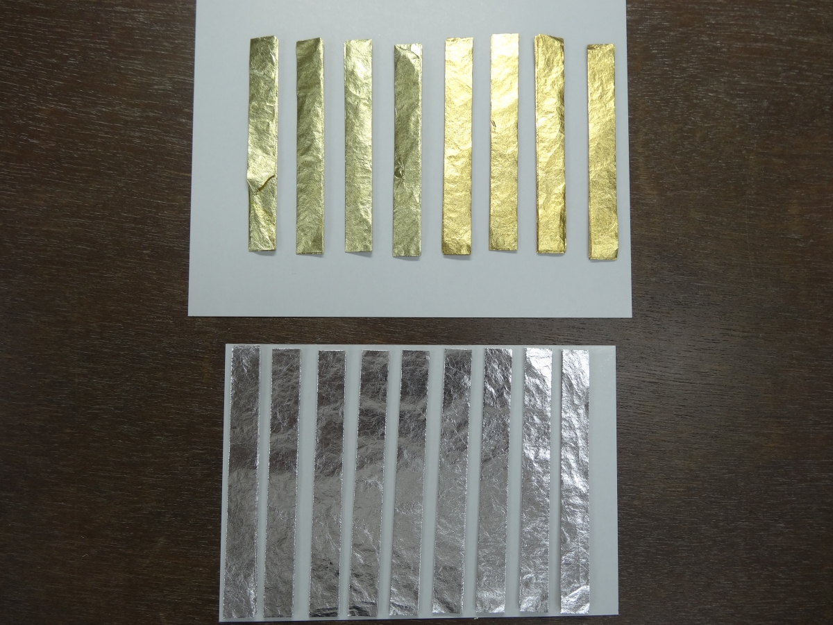 野毛は細く切る前に箔を何枚も合わせる「箔合わせ」をします。