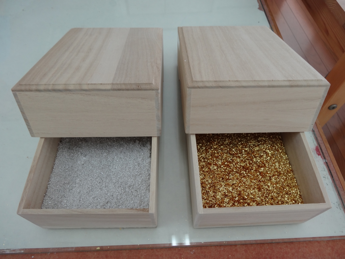 砂子は箔を篩(ふるい)で細かくしたものです。