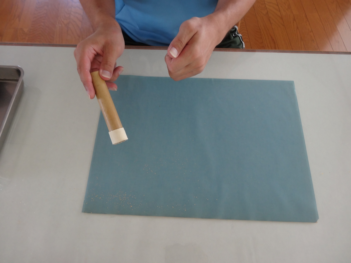 そのあと、押さえ紙で押さえて、砂子を定着させます。