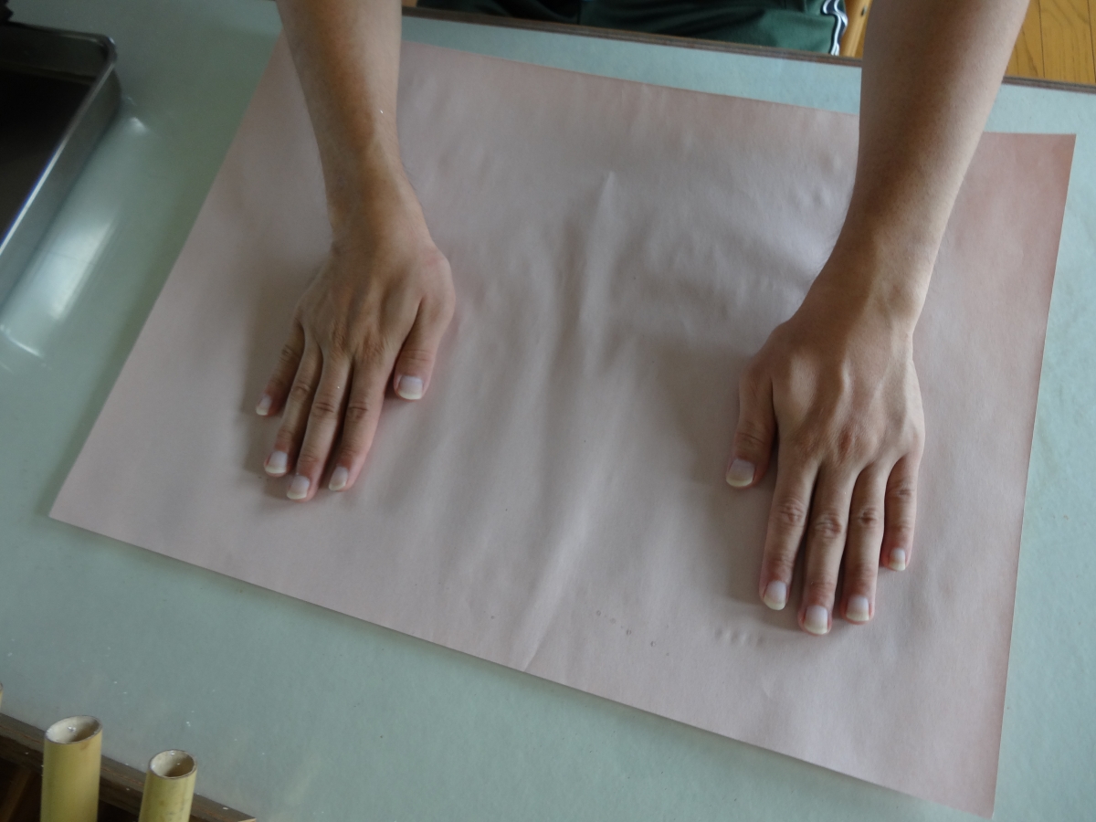 紙が十分お湯を吸い込んだら、紙の面が上に来るように