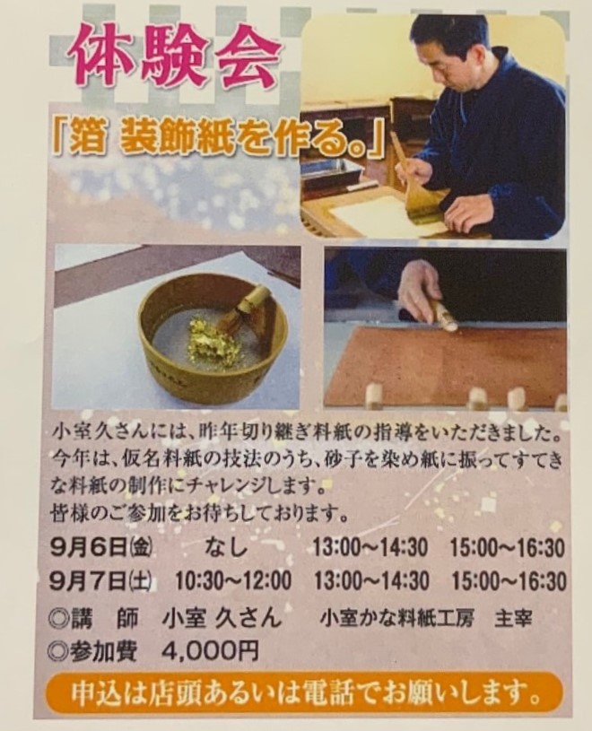 ゴールデン文具さんで、9月6日、7日の体験会が