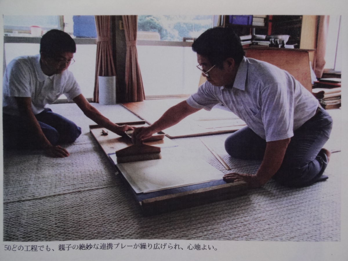 紺紙は越前の梅田太士さんが雁皮紙を漉き、