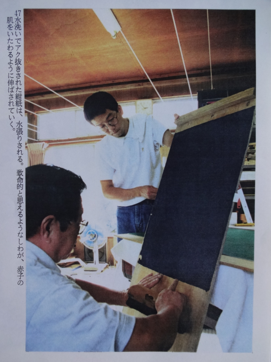 工房で行ったのは、その染められた紙のアクを洗い、