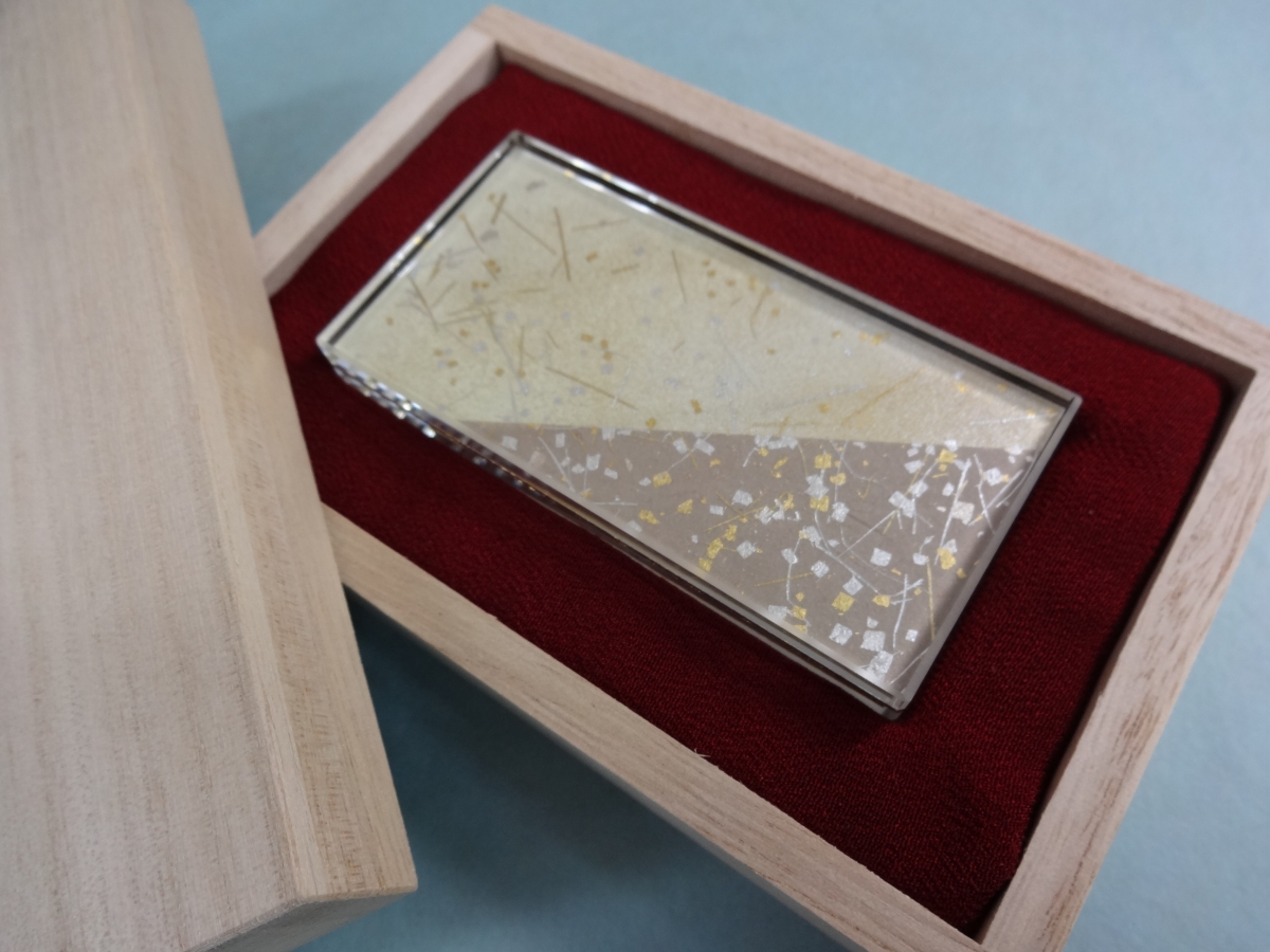 クリスタルガラス、純金箔使用、桐箱入りです。)